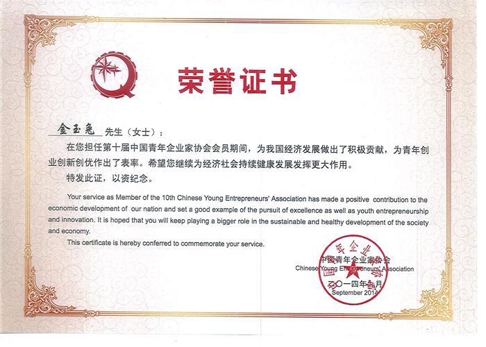 公司董事長(zhǎng)金玉兔先生榮獲“中國(guó)青年企業(yè)家協(xié)會(huì)”榮譽(yù),感到無(wú)上榮光,在擔(dān)任第十屆中國(guó)青年企業(yè)家協(xié)會(huì)會(huì)員期間,積極參與青年就業(yè)創(chuàng)業(yè)、環(huán)境保護(hù)、扶貧濟(jì)困等社會(huì)公益和抗災(zāi)救災(zāi)等工作,抓住機(jī)遇,開拓進(jìn)取,以更加昂揚(yáng)的精神狀態(tài),積極投身經(jīng)濟(jì)建設(shè)的主戰(zhàn)場(chǎng),不斷創(chuàng)造輝煌的業(yè)績(jī),同時(shí)也表示一定努力承擔(dān)好青年企業(yè)家的社會(huì)責(zé)任感,更好的為經(jīng)濟(jì)社會(huì)持續(xù)健康發(fā)展發(fā)揮更大作用,為構(gòu)建和諧社會(huì)做貢獻(xiàn)。