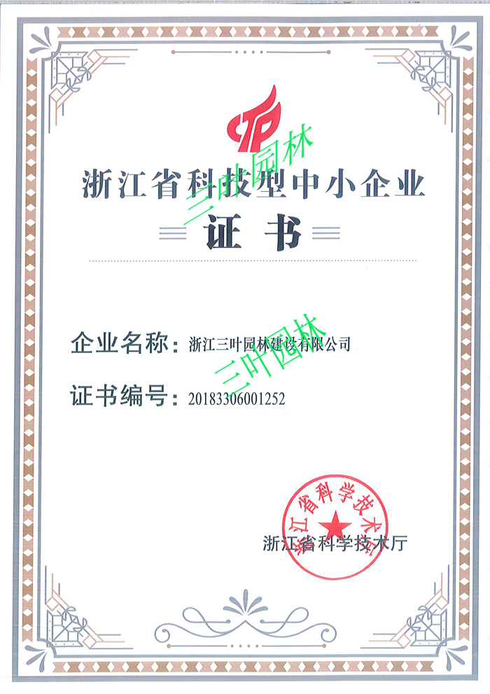 近日,三葉園林被評(píng)為“浙江省科技型中小企業(yè)”。為積極推進(jìn)創(chuàng)新創(chuàng)業(yè),加快培育科技型中小企業(yè),省科技廳下發(fā)了«浙江省科技型中小企業(yè)認(rèn)定管理辦法»,主要針對(duì)從事高新技術(shù)及其產(chǎn)品的研制、開(kāi)發(fā)、生產(chǎn)、銷(xiāo)售和服務(wù)的中小型企業(yè),把是否擁有自主知識(shí)產(chǎn)權(quán)、專有技術(shù)或先進(jìn)知識(shí)作為評(píng)審認(rèn)定的核心指標(biāo)。