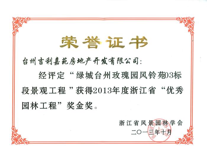 - 熱烈祝賀城臺州玫瑰園風鈴苑03標段景觀工程榮獲浙江省"優秀園林工程獎"金獎