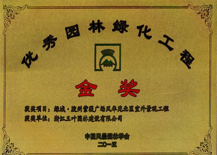 - 三葉園林喜獲"2015年度中國風景園林學會優秀園林綠化工程金獎"