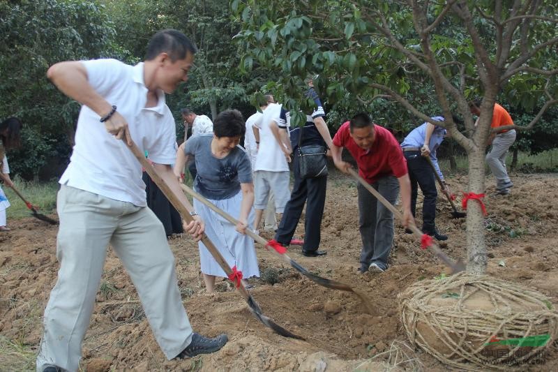 金色的傍晚時分金玉兔董事長與復旦大學韓昇教授及人文五期、西學四期等同學一同來到公司基地進行游園植樹活動,大家一邊興致滿滿的拿著工具樂不知疲的種著樹,一邊熱情地交談著種樹的技藝,給靜態美的苗圃帶來了歡聲笑語?粗豢每梅N好的樹,顯得很有姿態美,給苗圃增添了更多生命的色彩。之后又一起沿著苗圃景觀路線參觀苗圃迷人的風景,各種秋色樹種美不勝收讓人觸景生情,師生交流情感拉近了心與心的距離很溫馨,暢談苗木商情金總自信滿滿的說苗圃苗木未來的前景依然是牛市走向。自然和情感的融合,彰顯了一道人與自然美的風景線——人與自然和諧之美